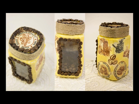 Каждая хозяйка регулярно покупает в супермаркете различные продукты питания в банках разных замысловатых форм. Зачастую именно красивая банка притягивает наш взгляд, и мы совершаем покупку, даже не задумываясь о качестве находящегося в ней продукта. По истечении определенного времени в нашем доме скапливается достаточно много таких банок из различных материалов. Однако не спешите их все выкидывать или пытаться кому-то продать. Сегодня мы рассмотрим декупаж банки для кофе, самое лучшее, что может у нас получится — это емкость для регулярного использования.